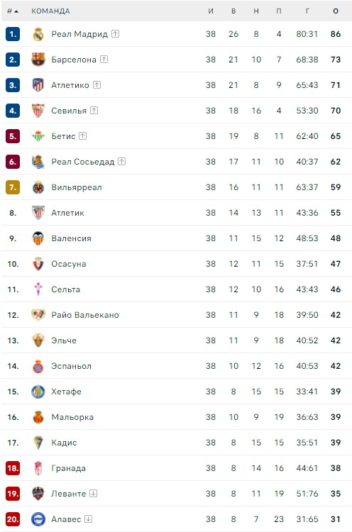 Обновленная турнирная таблица Ла Лиги: