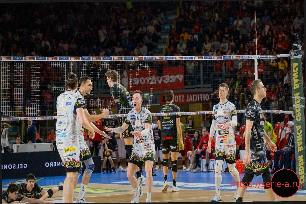 Первая игра финала чемпионата Италии по волейболу: Сир Перуджа против Любе Чивитанова